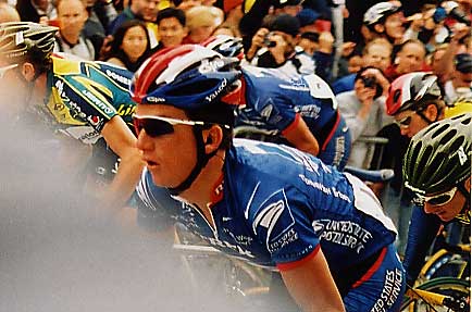 Vlatchislav EkimovAn amazingly competent and smooth rider, Ekimov has Olympic victories from both ends of his career. On this day, he was the perfect teammate, hanging back with the chasers, disrupting their efforts and quite content to be pulled up to the breakaway. |