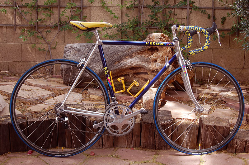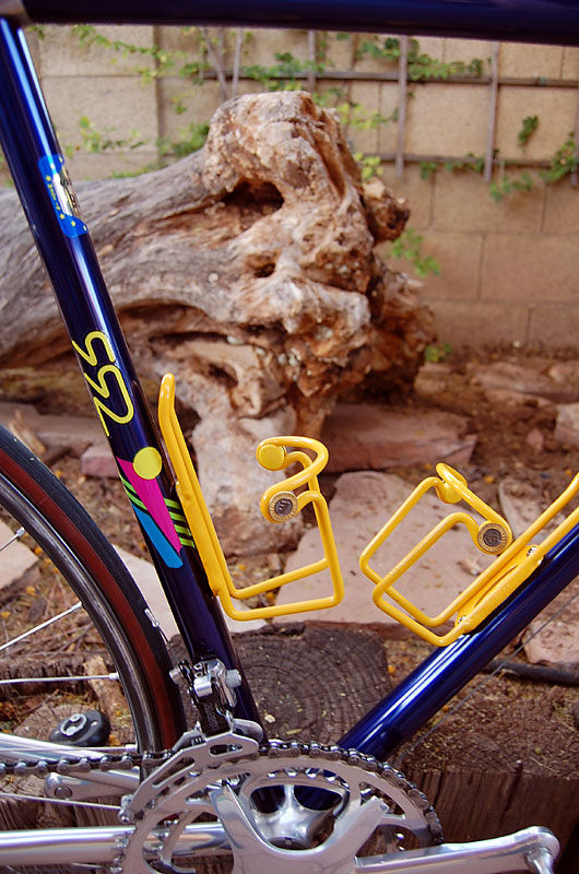 Strike saddle, Ciussi cages in yellow and Cinelli blue/yellow bar