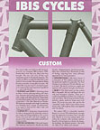 Ibis Catalogs & Ephemera: The Ibis print advertisements which I have in the files are starting to show up here. In answer to a question which has popped up a few times - "No, I never worked for them". I just always appreciated their designs and, um, "refreshing" approach to the bike business. If you can update information, provide missing years or correct errors within this section, please send me an email. I pestered Scot enough via email that he gave me some broad guidelines for serial numbers. And, like Jason in Friday the 13th, an Ibis resurrection is taking place... |