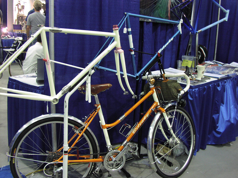 Frames and a wonderful mixte at the Bilenky booth. That mixte is quite recognizable, even though it now sporting drop bars..