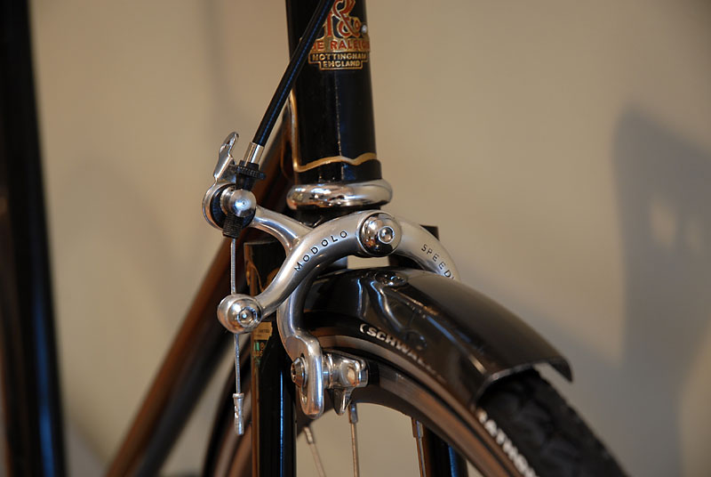 MKS touring pedals, a Cinelli stem, and a Modolo Speedy caliper